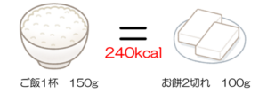 お餅を食べる場合はご飯(白米)の量を減らすなどして調整してください。