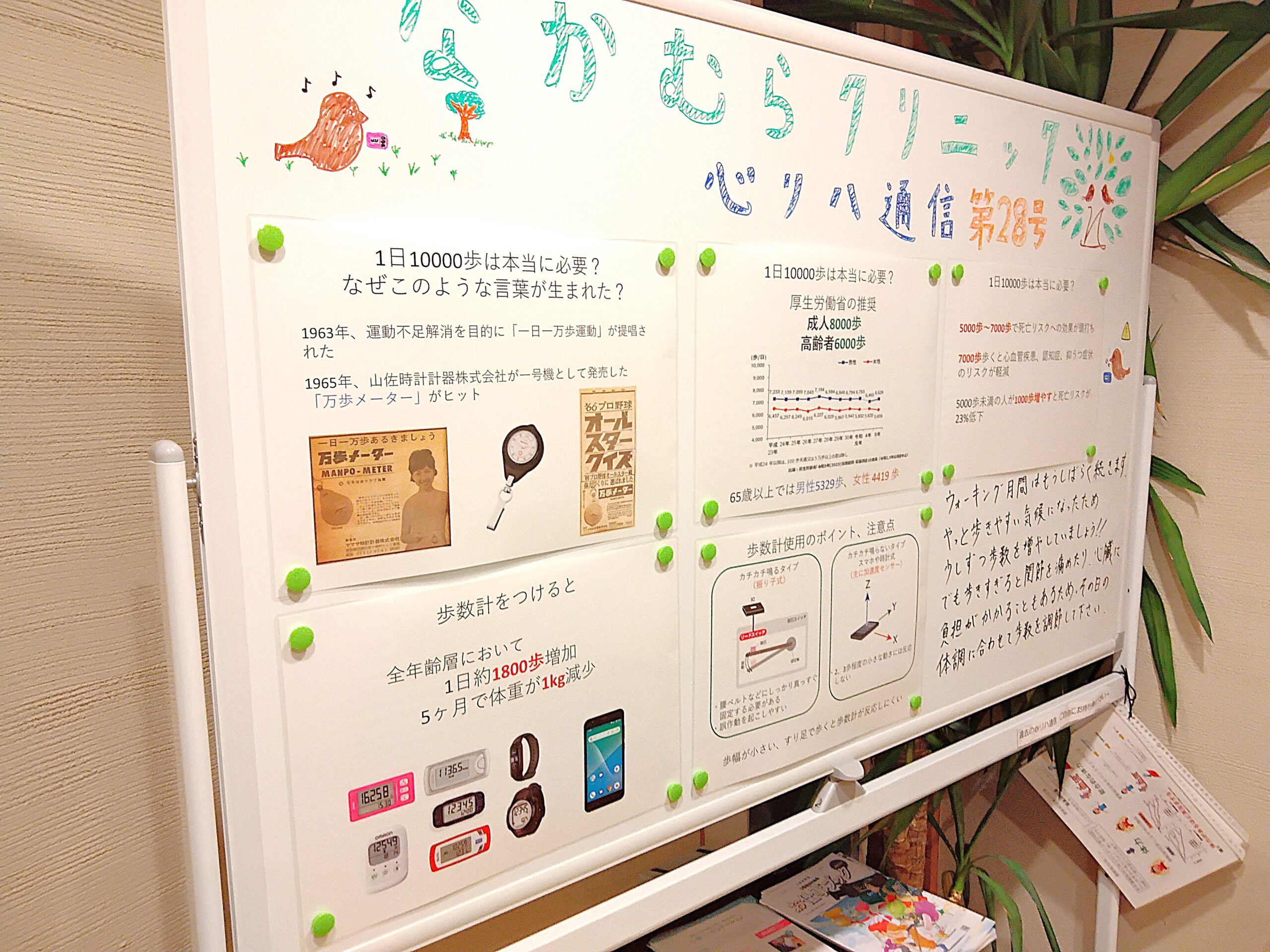 当院の心臓リハビリテーションではリハビリを実施されている患者様に対して、健康のための情報やトピックスをホワイトボードを利用してお伝えしています